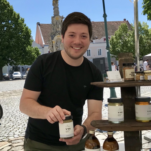 Unser Tausendsassa am Markt. Manfred Hauser braut Kaffee, hat das Manhartsberger Bio-Bier kreiert, bietet Wein und Frizzante von ausgesuchten Winzern, aber vor allem brennt er für das Brennen: Seine Destillate sind weit über Retz hinaus bekannt und beliebt. Zusätzlich betreibt er unsere Marktgreisslerei, in der er Teigwaren, Öle, Getreide, Mehle und Eingelegtes von ausgesuchten Produzentinnen und Produzenten anbietet.