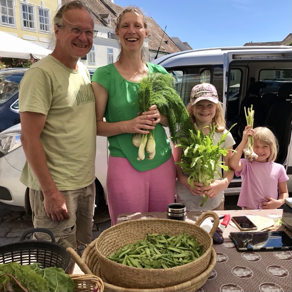 Mabel und Tosh Karth betreiben in Pulkau einen Market Garden, auf dem sie mit viel Handarbeit Dutzende verschiedene Gemüsesorten anbauen, mit denen sie uns in der warmen Jahreszeit versorgen. Was sie auch immer mitbringen: gute Laune.