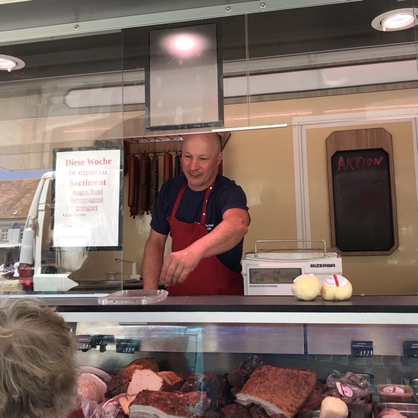 Eine Fleischerei, wie es sie kaum mehr gibt: die Tiere stammen von befreundeten Bauern, werden selbst geschlachtet und nach alten Rezepten verarbeitet. Ohne Geschmacksverstärker, ohne Farbstoffe. Die Leberkässemmel am Markttag ist für viele mittlerweile Pflicht!